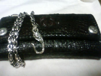 何故か大阪で買った命より大事な鰐の財布に装着してみました(ウォレットチェーンなんで当然ですが)